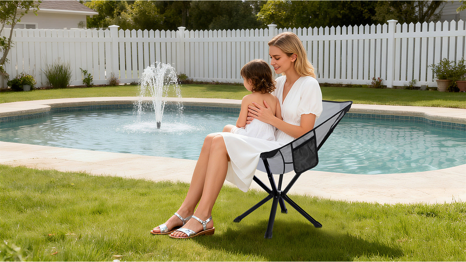 - No assembly required, just pull the built-in tab to unfold and lock the chair in place.